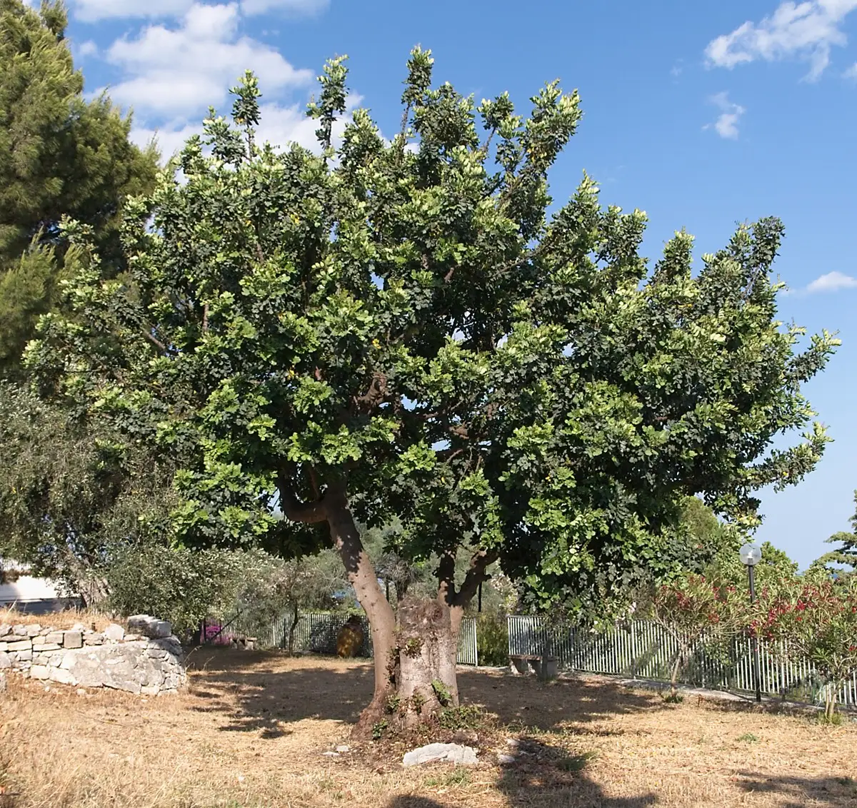 Die Steineiche wächst auf Sardinien bevorzugt auf felsigem Gelände und bleibt oft eher niedrig im Wuchs. Die Holzernte erfolgt selektiv und mit Bedacht. Zur Zeit des antiken Rom galten Steineichen als heilige Bäume.