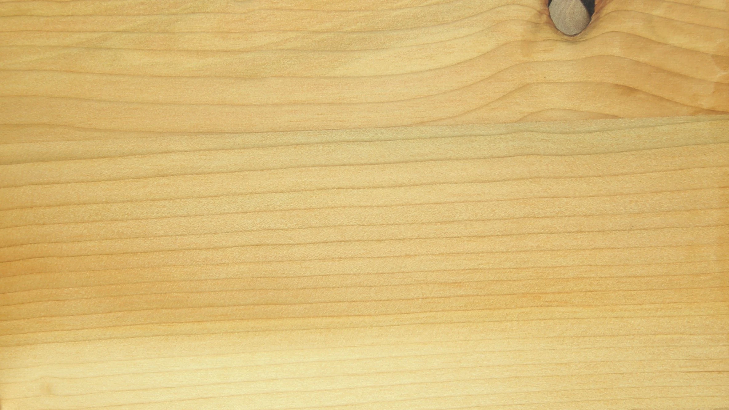 Gelblich bis orangefarbenes Holz mit teils faseriger Struktur. Es kann zu Verfärbungen durch Verblauung kommen – oft sogar als Gestaltungselement erwünscht. Insgesamt sehr ruhiges und einheitliches Erscheinungsbild.