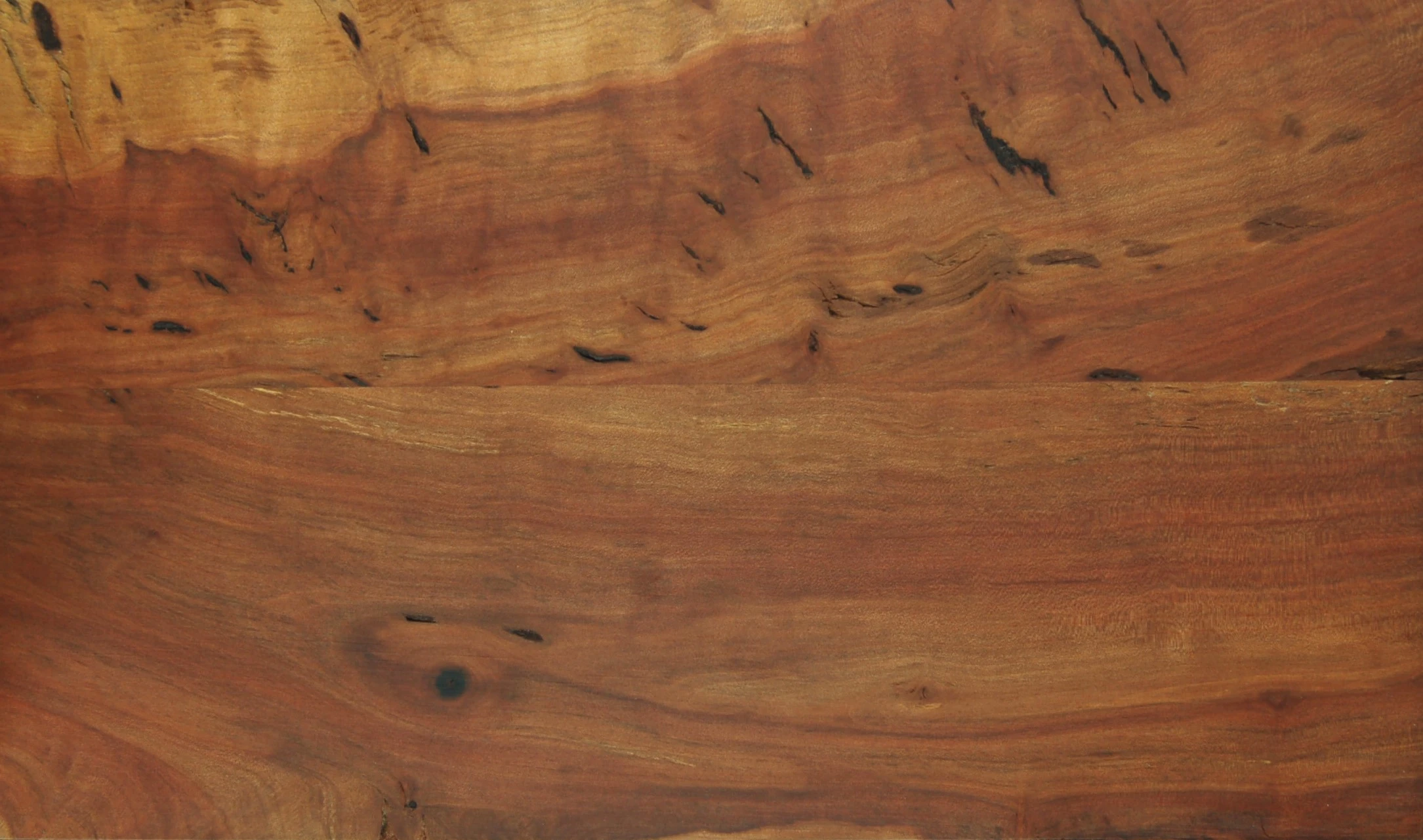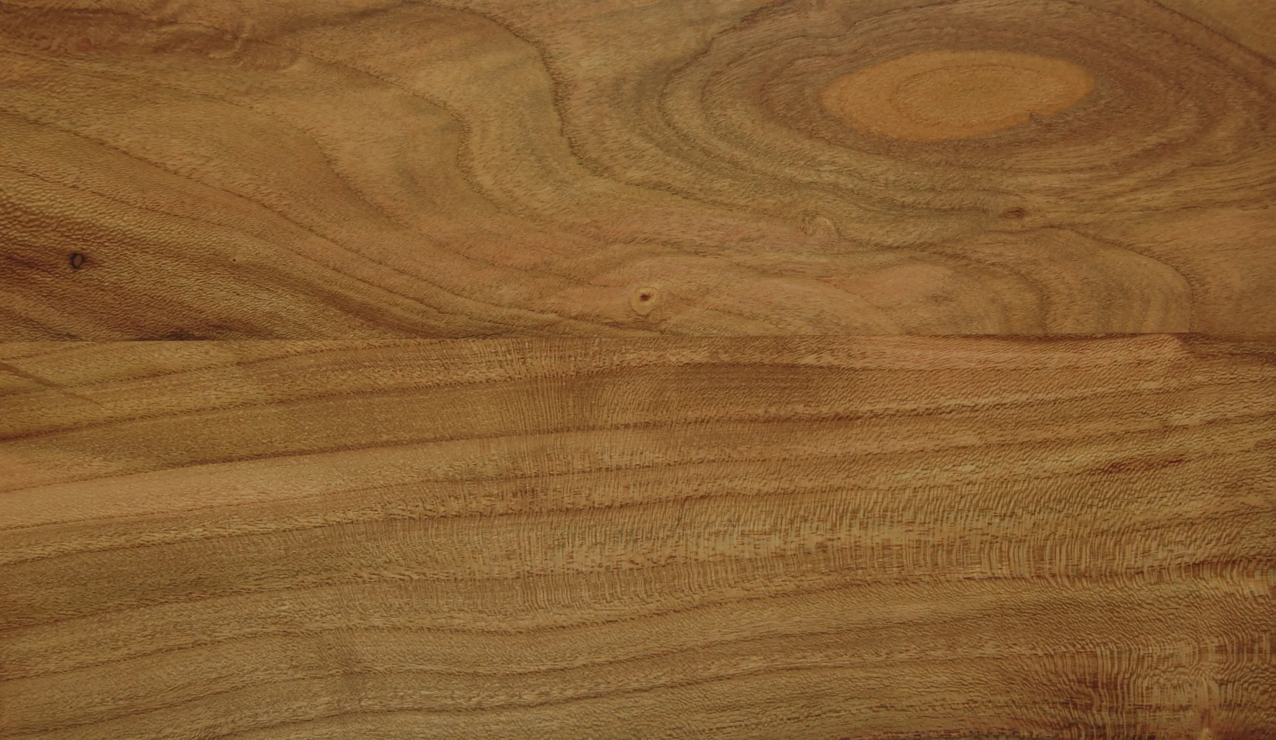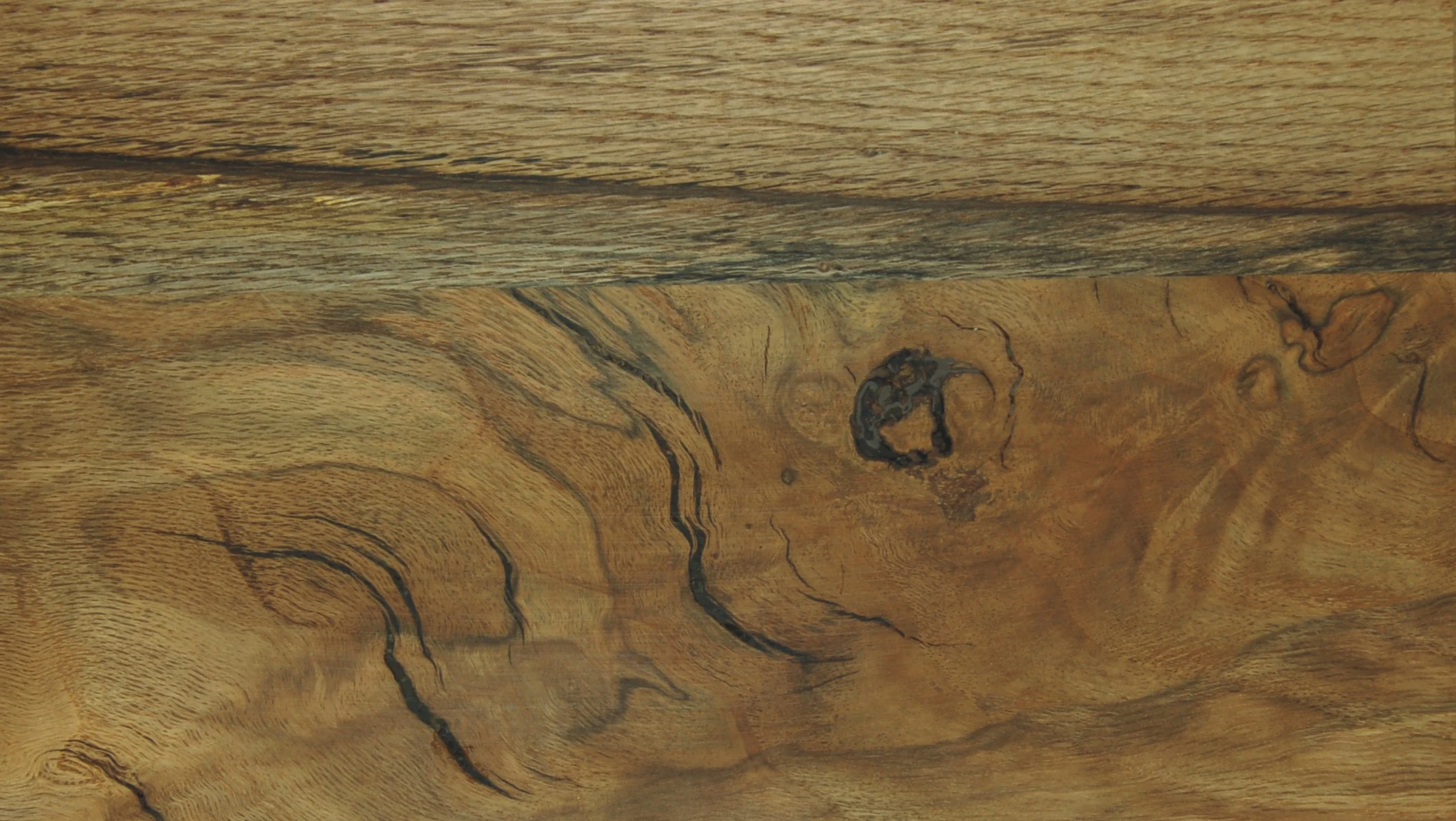 Sehr schweres Holz mit rötlich-grauer Färbung. Maserung oft ruhig, aber mit hohem Ausdruck und spürbarer Struktur.