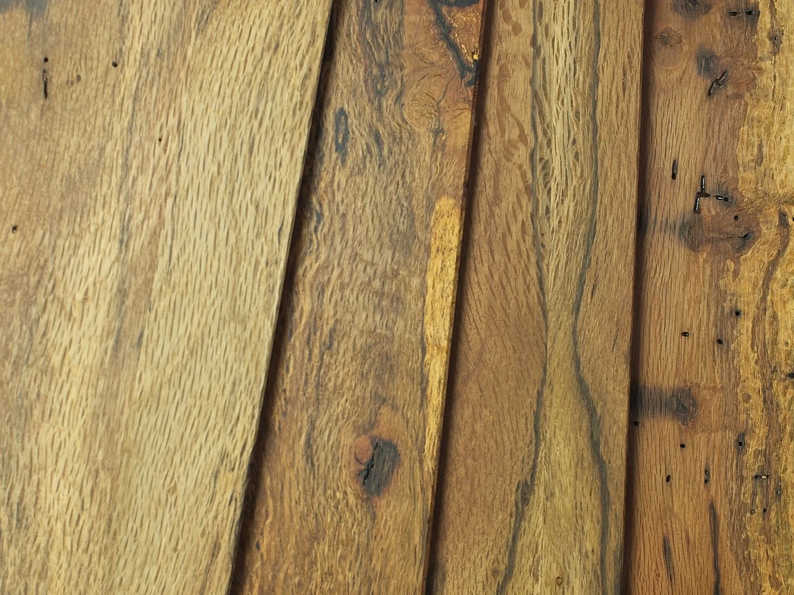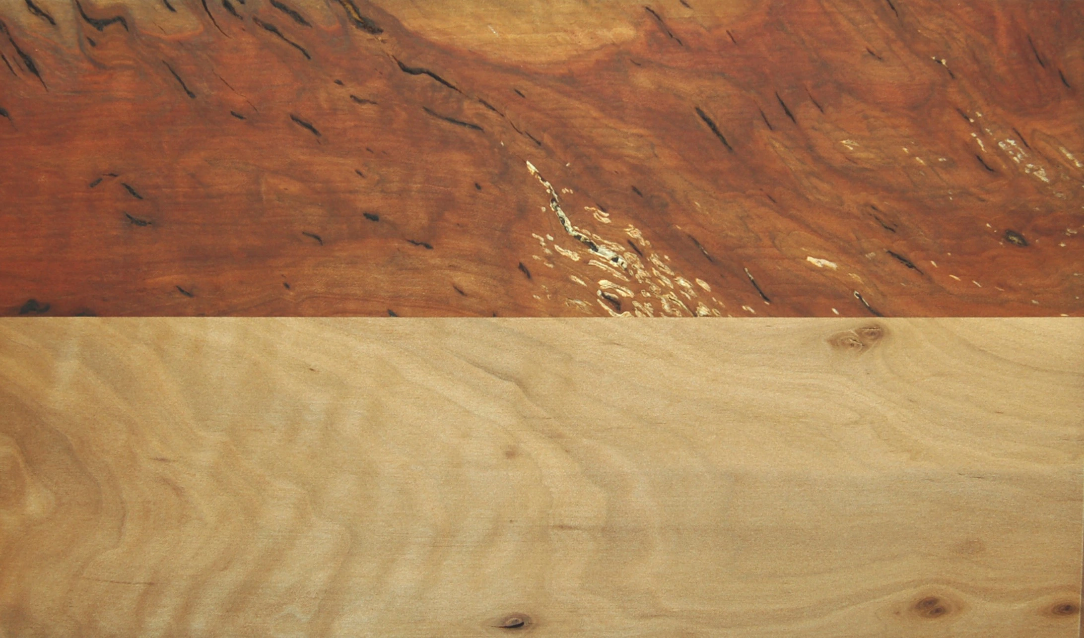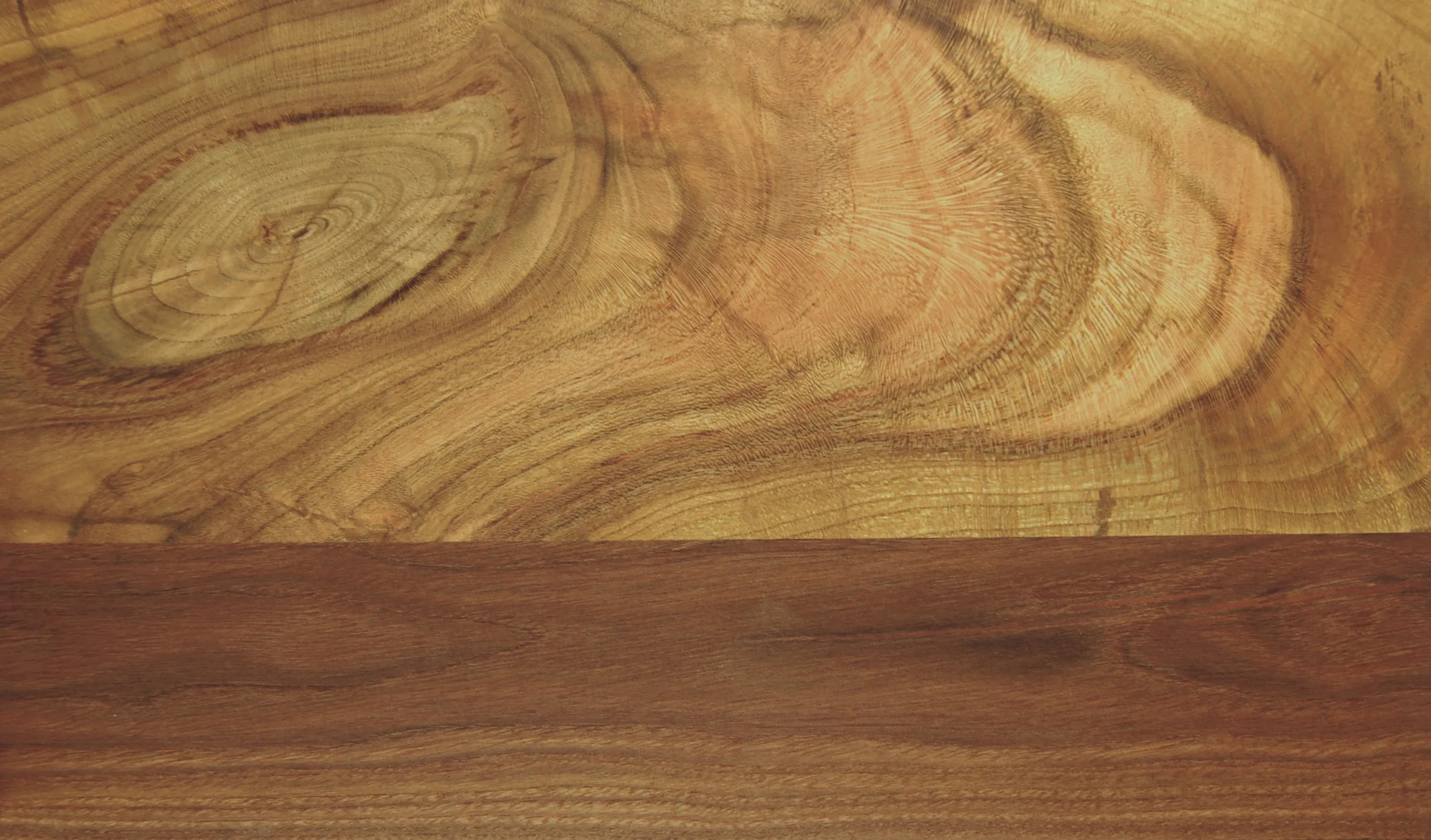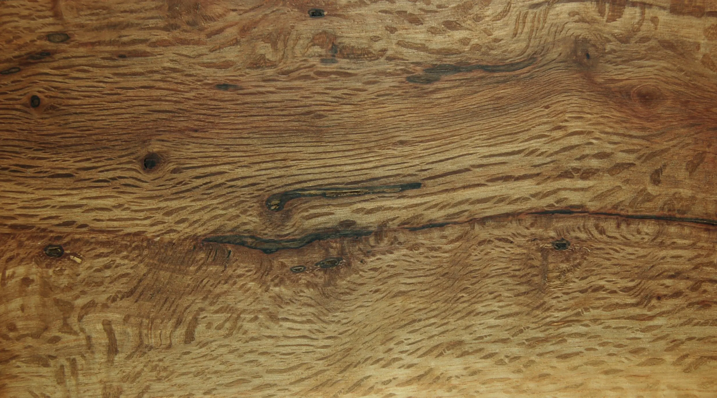 Sehr schweres Holz mit rötlich-grauer Färbung. Maserung oft ruhig, aber mit hohem Ausdruck und spürbarer Struktur.