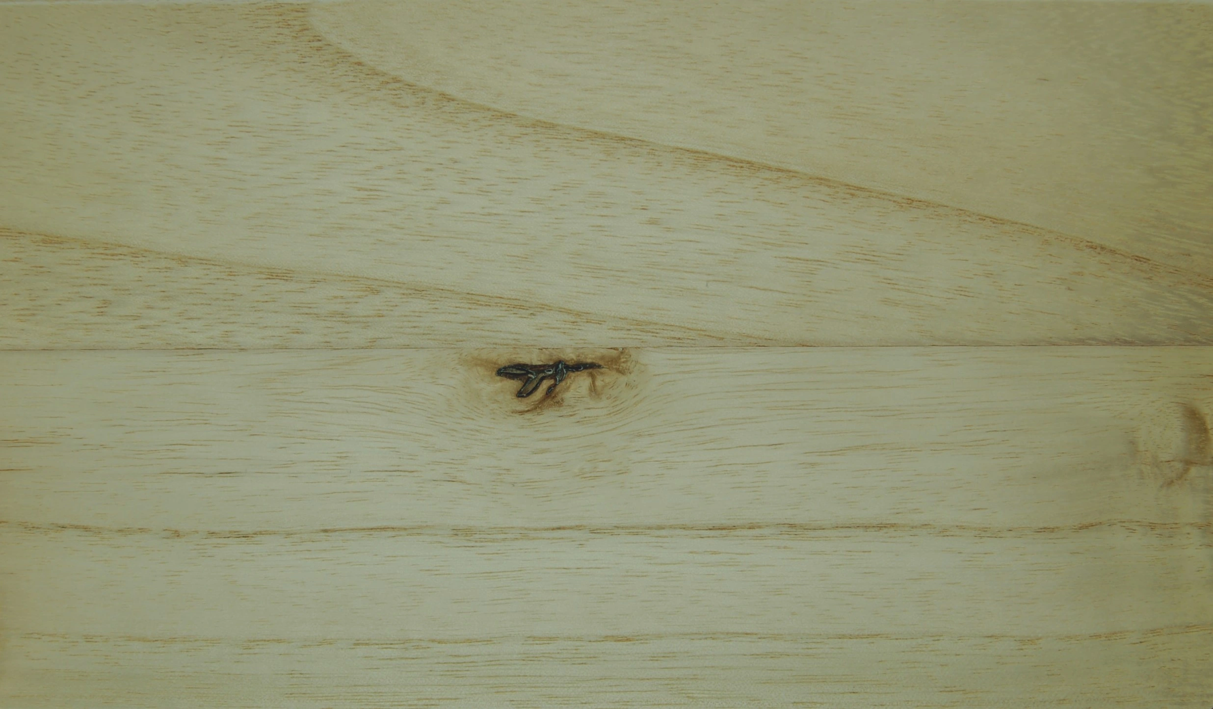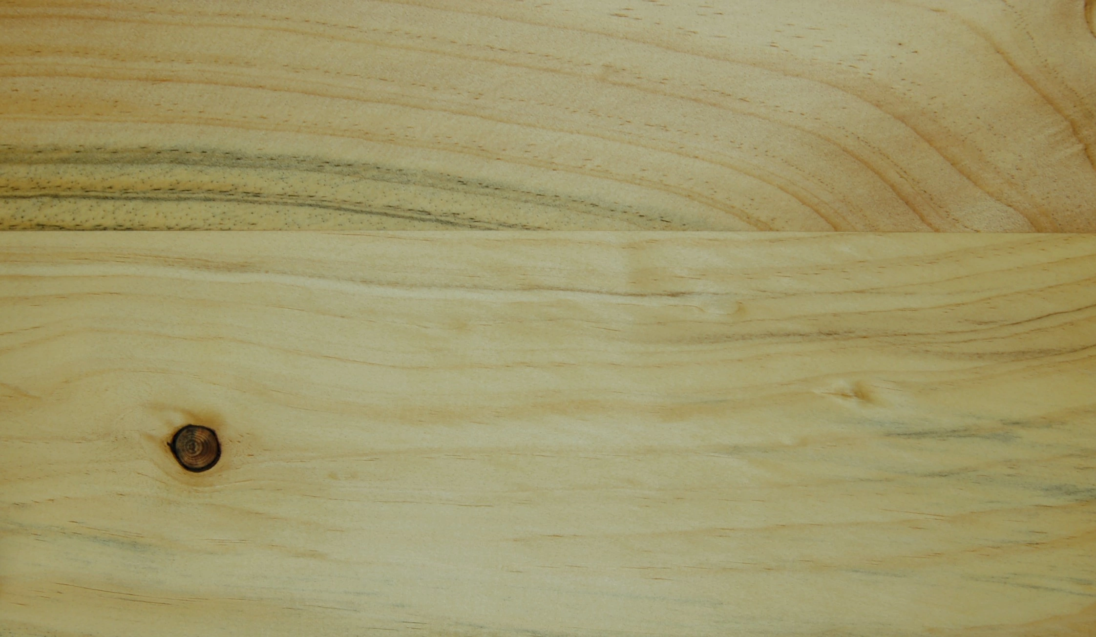 Hellbraun bis gelblich mit feinen Grautönen und gelegentlich rosafarbenen Einfärbungen. Die Markröhre ist deutlich sichtbar und wird teils ausgegossen. Ansonsten wirkt das Holz sehr ruhig und einheitlich. Die Jahresringe setzen sich leicht vom restlichen Holz ab und im richtigen Licht sind viele feine Markstrahlen sichtbar.