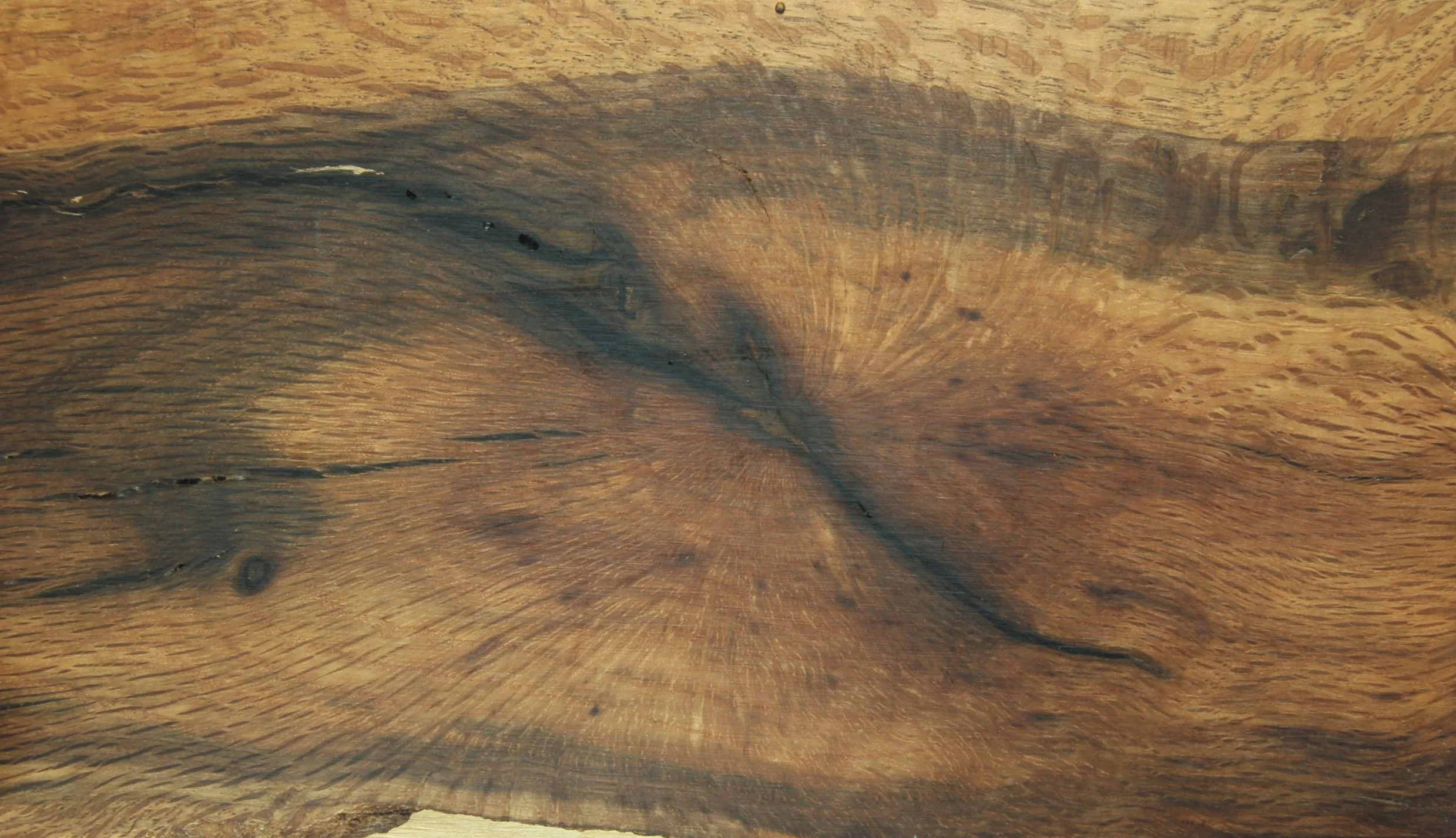 Das Splintholz ist hellbraun, das Kernholz lebhaft gemasert. Charakteristisch hier tiefdunkle, fast schwarze Adern mit scharfen rändern – oft mit Tuschezeichnungen vergleichbar. Sehr dekorativ und kunstvoll.